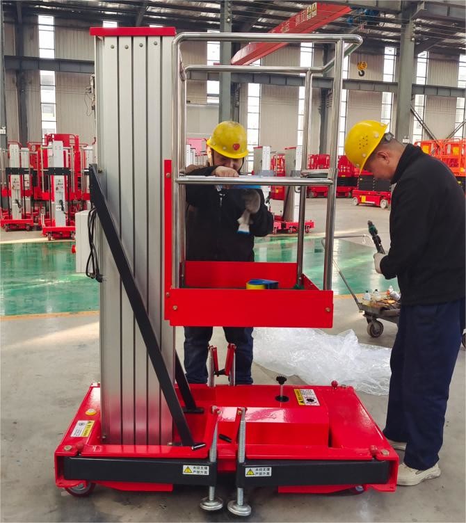 26.65 ফুট 286 পাউন্ড অ্যালুমিনিয়াম খাদ একক মাস্ট বায়বীয় কাজ উত্তোলন প্ল্যাটফর্ম মোবাইল লিফট প্ল্যাটফর্ম